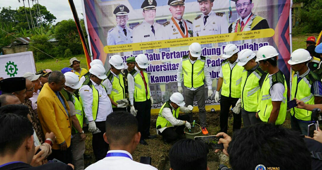 IWOSUMBAR.COM, PADANG –Wakil Gubernur Sumatera Barat Audi Joinaldy diberi Kehormatan untuk meletakkan batu pertama pembangunan gedung perkuliahan Universitas Negeri Padang (UNP) di Kota Payakumbuh Rabu 7/9. Dihadiri Rektor Prof. Ganefri, Ph.D beserta jajarannya. Bupati dan Walikota se-Sumatera Barat yang kebetulan sedang mengikuti Rapat Kerja di Kota Payakumbuh.