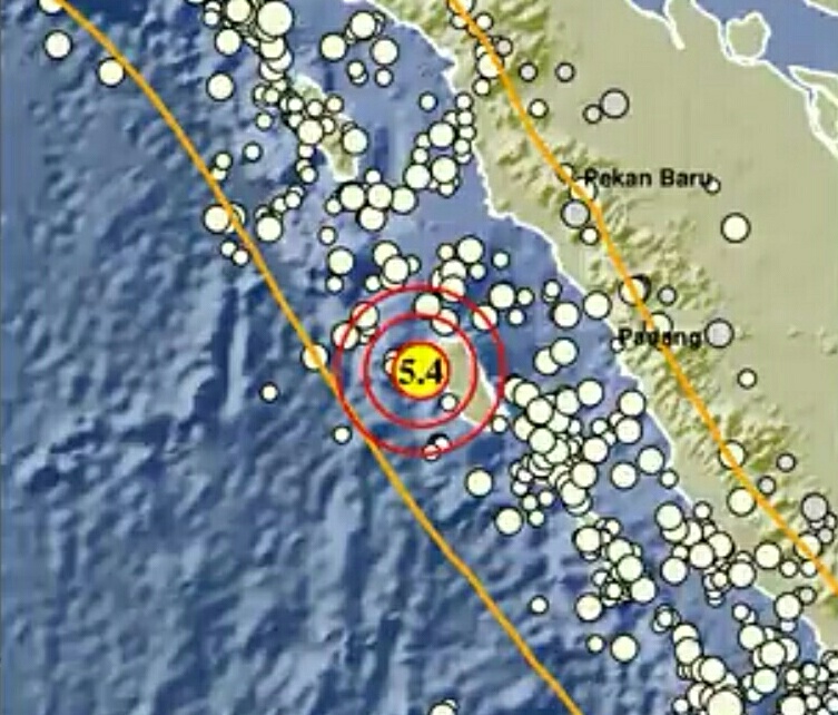 Tak lama berselang Gempa kembali terjadi dengan kekuatan Magnitudo: 5.4, Kedalaman 11 km, pada pukul 06:24:01 WIB, dengan Koordinat: 1.25 LS-98.49 BT 146 km BaratLaut Mentawai.