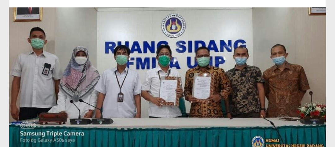 IWOSUMBAR.COM, PADANG – FMIPA UNP kembali melakukan penandatanganan perjanjian kerjasama (PKS) baru dengan BPS Sumbar, Rabu, 19 Mei 2021 bertempat di Ruang Sidang FMIPA UNP. PKS baru ini merupakan PKS yang sudah diperbaharui dari PKS FMIPA UNP-BPS Sumbar yang sudah ditandatangani 2019 lalu.