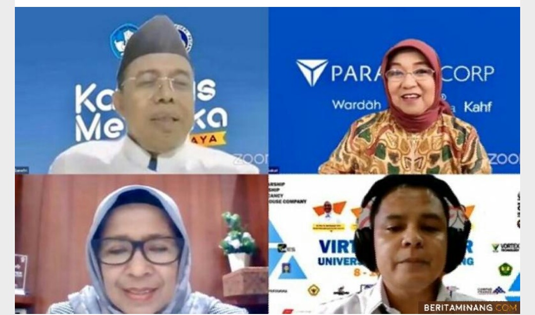 IWOSUMBAR.COM, PADANG – Unit Pelaksana Teknis Pengembangan Karir dan Kewirausahaan Universitas Negeri Padang (UPT PKK UNP) hari ini menyelenggarakan kuliah umum secara virtual bersama Founder dan Komisaris Utama PT Paragon Technology and Innovation, Dr. (HC) Hj. Nurhayati Subakat, Apt dengan tema “Pengembangan Pendidikan dalam perspektif pengusaha”. (9/4/2021)