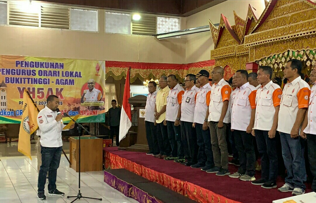 IWOSUMBAR.COM, PADANG – Ketua Organisasi Amatir Radio Indonesia Daerah Sumbar, Audy Joinaldy mengukuhkan Syahrul Junaidi Ajo sebagai Ketua ORARI Lokal Bukittinggi – Agam periode 2022-2025 di Istana Bung Hatta, Bukittinggi, Minggu (2/10/2022).