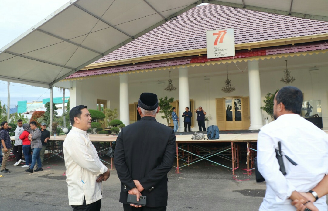 Memastikan semua berjalan lancar, Jumat (28/10) Gubernur Mahyeldi bersama sejumlah pejabat melakukan peninjauan lokasi melihat kesiapan panitia penyelenggara daerah dapat merampungkan pekerjaan tepat pada waktunya.