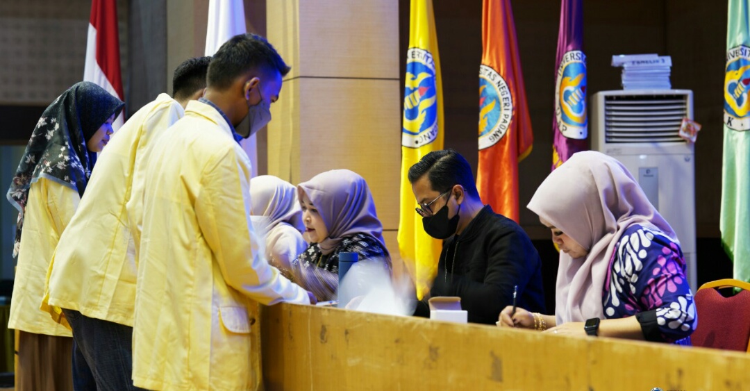 Iwosumbar.com, Padang – Rektor Universitas Negeri Padang (UNP) diwakili oleh Wakil Rektor III Drs. Hendra Syarifuddin, M.Si.,Ph.D bersama branch manager PT. Bank Tabungan Negara (Persero) Tbk. Yudha Andaka menyerahkan buku tabungan kepada 1763 mahasiswa penerima beasiswa KIP UNP tahun masuk 2022.