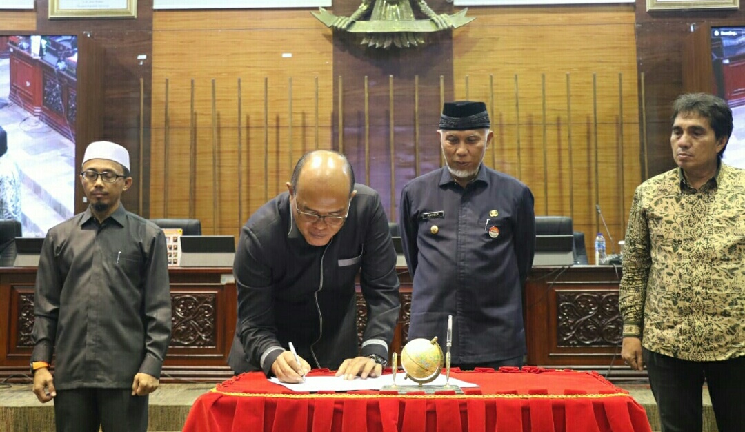 Persetujuan ditandai penandatanganan berita acara bersama Gubernur Mahyeldi dan Ketua DPRD Supardi dalam Rapat Paripurna dengan agenda Pengambilan Keputusan Terhadap Rancangan Peraturan Daerah Tentang APBD Provinsi Sumbar Tahun Anggaran 2023, Jumat (26/11).