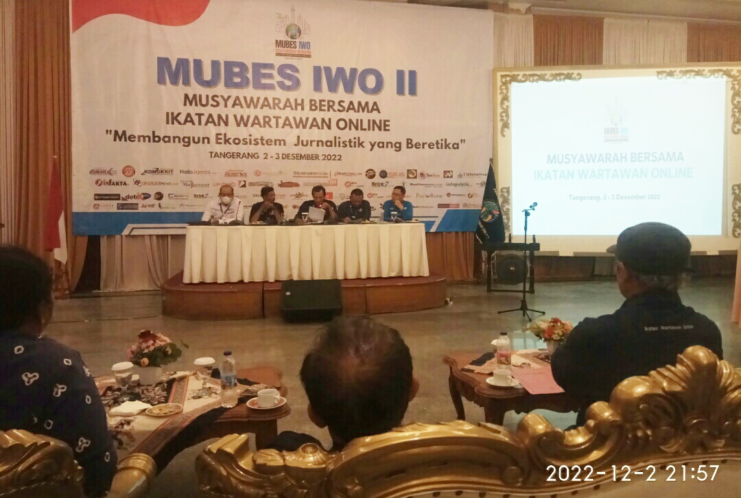 IWOSUMBAR.COM, TANGGERANG -Pengurus Pusat Ikatan Wartawan Online (PP IWO) melaksanakan Musyawarah Bersama (Mubes) ke-2 bertajuk “Membangun Ekosistem Jurnalistik yang Beretika”. di Hotel Istana Nelayan Tanggerang berlangsung selama dua hari 2-3 Desember 2022.