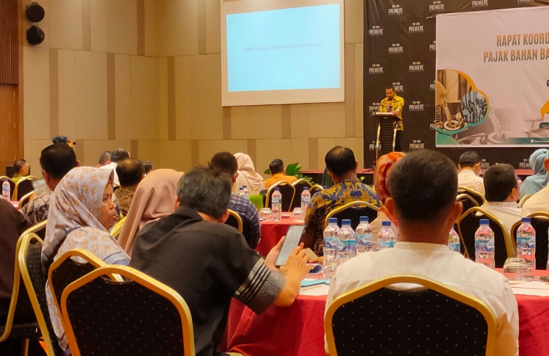 “Pada tahun 2022, PBBKB meningkat sekitar 3 persen dari tahun sebelumnya. Hal ini sudah seyogyanya dikelola dengan baik oleh pemerintah daerah,”. Demikian disampaikan oleh Wakil Gubernur Audy Joinaldy pada Rakor Pemprov dengan Stakeholder terkait, dalam rangka optimalisasi penerimaan pajak bahan bakar kendaraan bermotor BPKB tahun 2022, Jum’at (2/12/22).