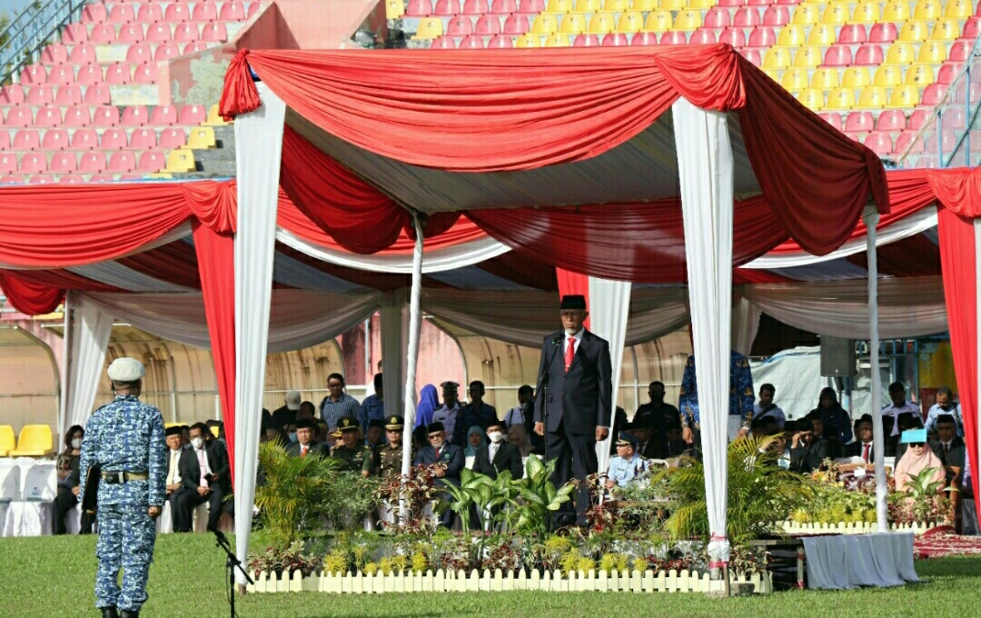 “Nilai-nilai inilah yang harus terus diimplementasikan dalam keseharian terutama para muda-mudi penerus bangsa,” ucap gubernur membacakan. (MC)