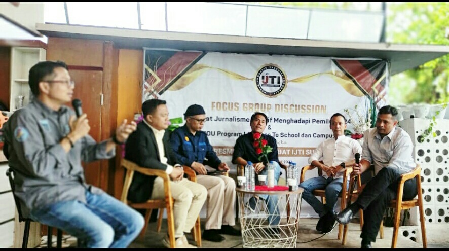 Gelaran diskusi cukup menarik karena menghadirkan lima narasumber yang mumpuni terkait tema tersebut, yakni Prof Asrinaldi dari FISIP UNAND, Nofal Wiska (Ketua Komisi Informasi Sumbar), Sutrisno (Ketua KPID Sumbar) Iswaryani (KPU Sumbar) dan Muhammad Khadafi (Bawaslu Sumbar) di moderator langsung Ketua Pengda IJTI Sumbar Defri Mulyadi, Sabtu (28/1-2023)