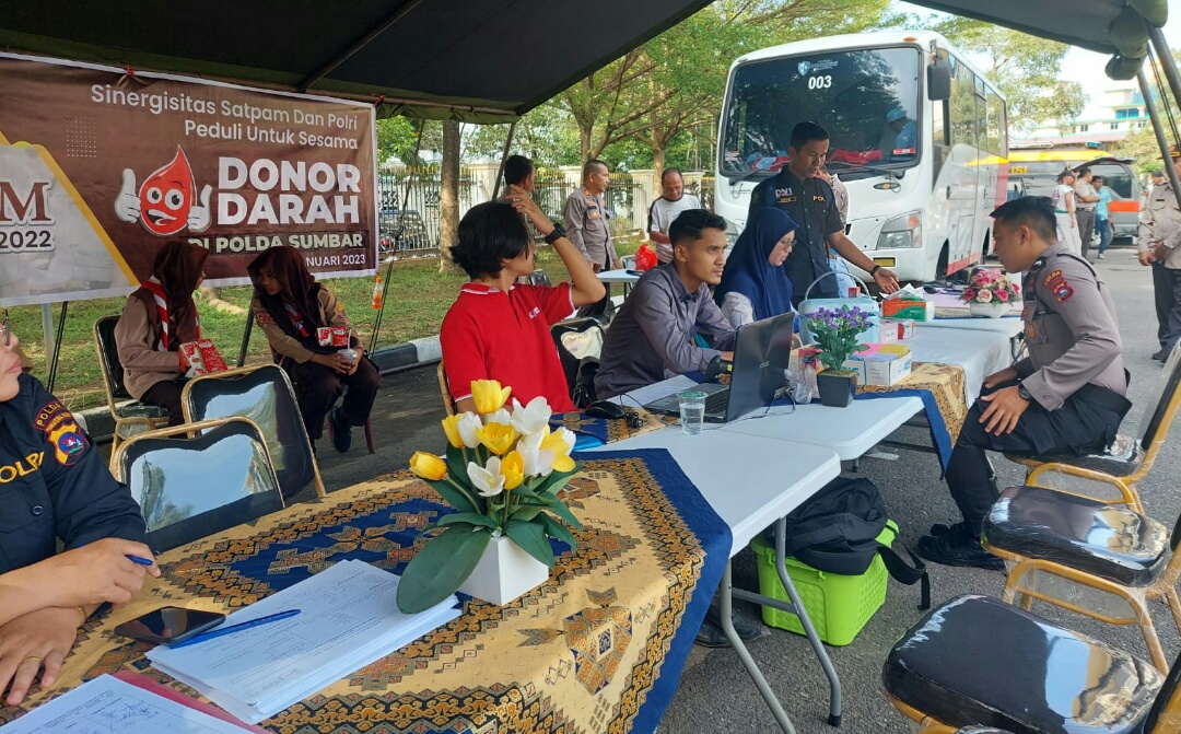 Untuk di Sumatera Barat, HUT Satpam dilakukan upacara bersama dilapangan parkir Polda sekaligus melaksanakan kegiatan sosial, Donor Darah bersama PMI Padang Senin (30/1/23) pagi.