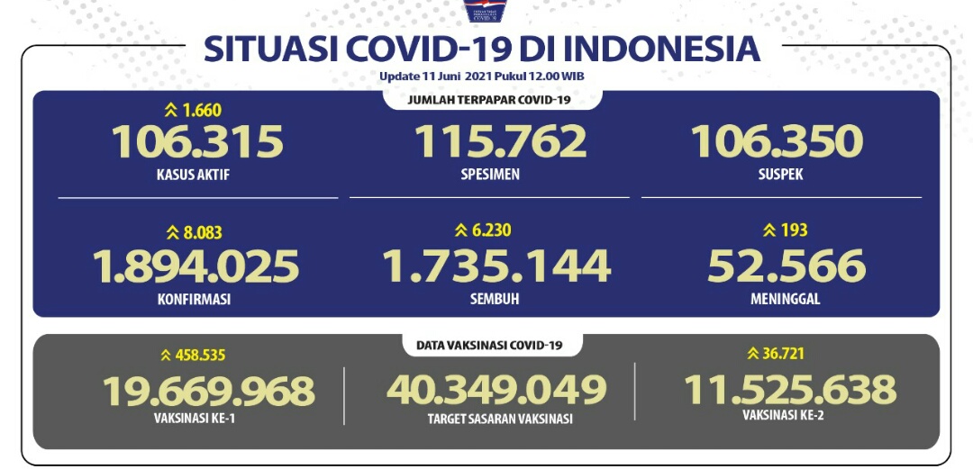 Adapun kasus penambahan positif juga bertambah berjumlah sebanyak 8.083 orang. Sehingga total kasus positif telah berjumlah sebanyak 1.894.025 kasus.