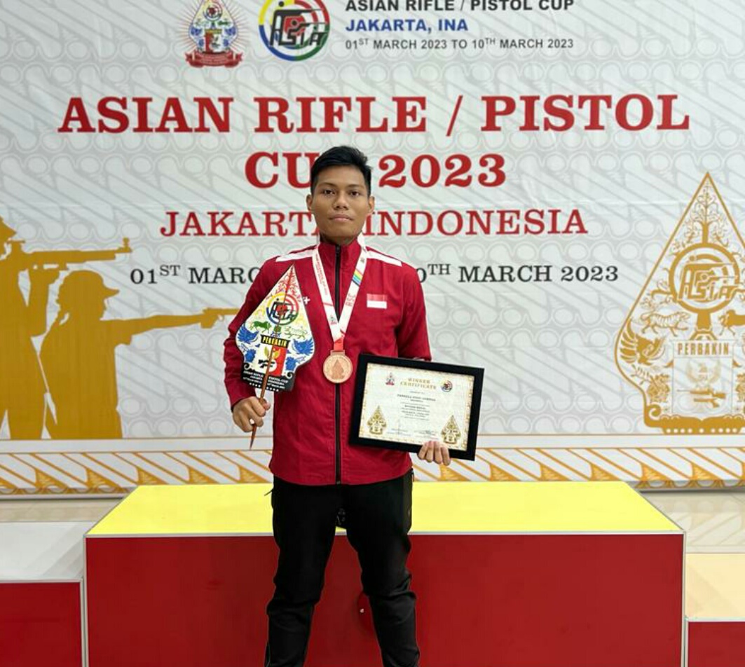 “Alhamdulillah sekarang mendapatkan prestasi internasional dengan meraih medali Perunggu pada Asian Rifle / Pistol CUP 2023. Kami sangat bangga,” ujarnya.