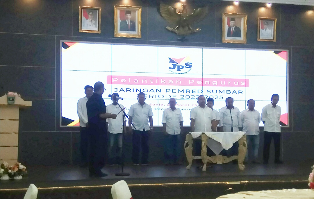Iwosumbar.com, Padang – Pelantikan pengurus Jaringan Pemred Sumbar (JPS) dilaksanakan di Auditorium Gubernuran Senin 20 Maret 2023 berlangsung meriah, dihadiri perwakilan Pemprov Sumbar dan Pembina serta puluhan anggota JPS.