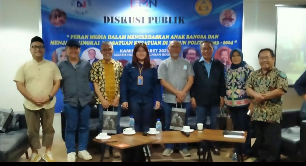 IWOSUMBAR.COM, BOGOR – BERTEMA “Peran Media dalam Mencerdaskan Anak Bangsa dan Menjaga Bingkai Persatuan dan Kesatuan di Tahun Politik 2023-2024”. Beberapa tokoh nasional hadir dalam diskusi publik yang di selenggarakan di Hotel, Kota Bogor, pada Kamis 30 Maret 2023.