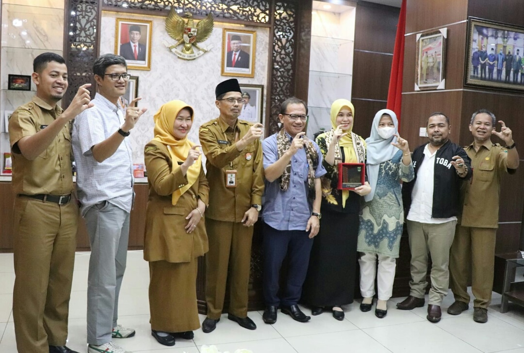 Tim Penilai Anugerah TinarBuka diterima Wagub Sumbar Audy Joinaldy, Kadiskominfotik Sumbar Siti Aisyah dan Sekretaris Diskominfotik Sumbar Oni Fajar Syahdi.