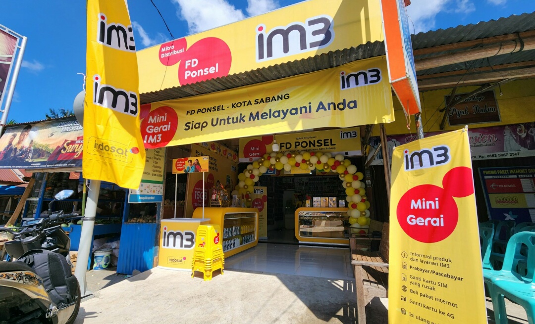 distribusi termasuk mini gerai sekitar 91 titik untuk menjangkau area yang cukup jauh dari gerai utama IM3, seperti di Jambi (Bangko), Indralaya Palembang, Tanah Masjid Rantau Prapat, dan area lain dengan potensi kebutuhan layanan yang tinggi.