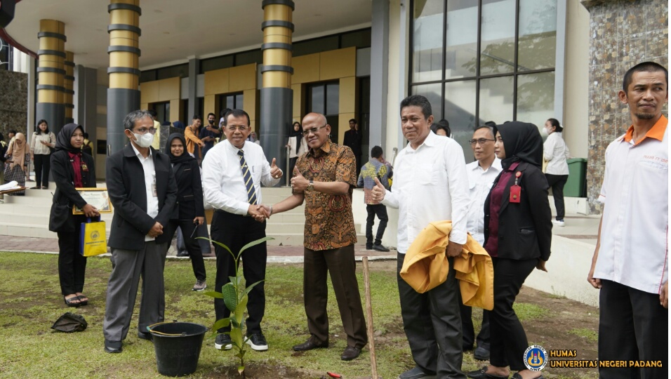 Kuliah umum diakhiri dengan penandatanganan buku Aldera dan penanaman bibit Pohon Demokrasi oleh Anggota VI BPK RI, Dr. Pius Lustrilanang, dan Prof. Ganefri. (/Hum)