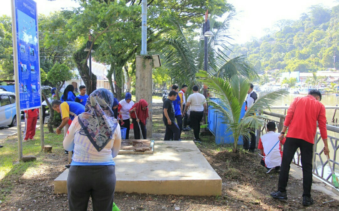 Kepolisian Daerah Sumatera Barat (Polda Sumbar) beserta seluruh Polres dan Polsek di jajarannya, Kamis (13/7) melaksanakan aksi bersih-bersih bersama masyarakat.