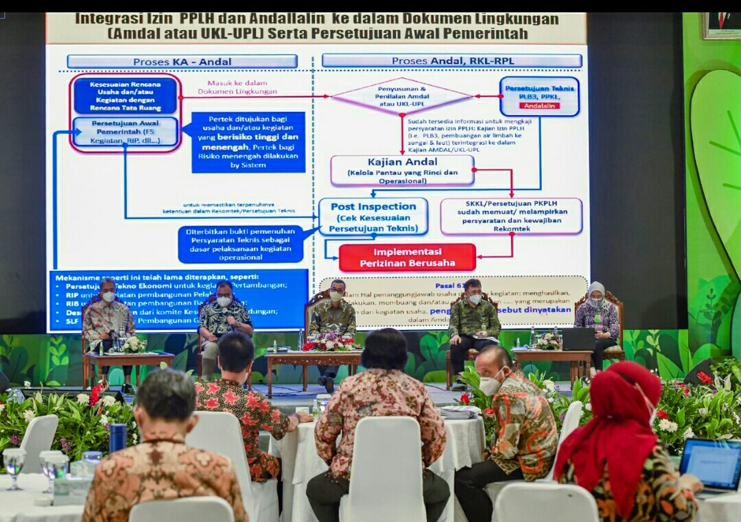 Tiga Peraturan Pemerintah yang disosialisasikan, yaitu: (1) PP Nomor 5 Tahun 2021 tentang Penyelenggaraan Perizinan Berusaha Berbasis Resiko; (2) PP Nomor 22 Tahun 2021 tentang Penyelenggaraan Perlindungan dan Pengelolaan Lingkungan Hidup; (3) PP Nomor 23 Tahun 2021 tentang Penyelenggaraan Kehutanan; dan (4) PP Nomor 24 Tahun 2021 tentang Tata Cara Pengenaan Sanksi Administratif dan Tata Cara Penerimaan Negara Bukan Pajak yang Berasal dari Denda Administratif di Bidang Kehutanan.
