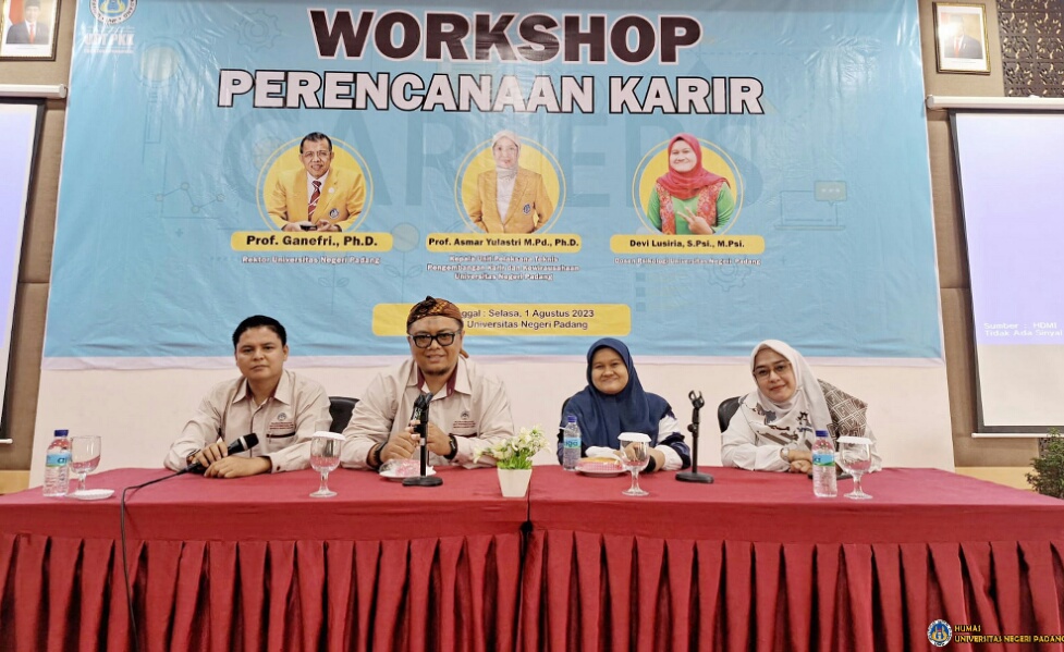 Iwosumbar.com, Padang -Unit Pelayanan Teknis Pengembangan Karir & Kewirausahaan Universitas Negeri Padang gelar Workshop Perencanaan Karir bagi Unit Kegiatan Kemahasiswaan (UK) dan Organisasi Kemahasiswaan (ORMAWA) di ruang Hospitality Center lantai 4, Selasa (1/8).