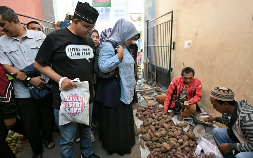 Beberapa di antara warga bahkan terlihat berbincang akrab dengan Anies. Dia terlihat menyimak seperti yang ditunjukkannya saat berbincang dengan pedagang pasar.