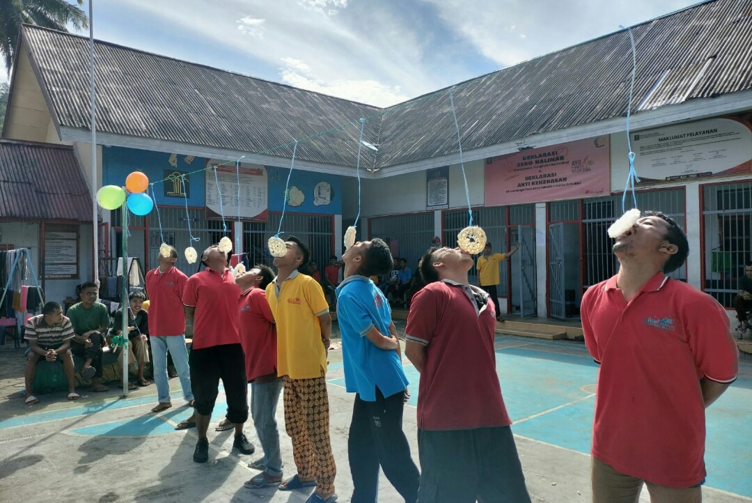 Sebanyak 50 Warga Binaan ikuti Lomba permainan tradisional yang dibagi menjadi beberapa kelompok, lomba yang diikuti yaitu futsal, lomba makan kerupuk, lomba balap karung, dan lomba balap kelereng, kegiatan ini sangat disambut antusias oleh para warga binaan.