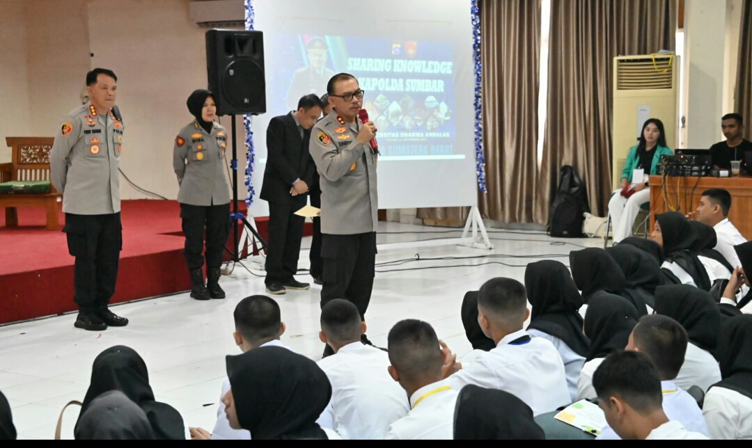 Iwosumbar.com, Padang – Kapolda Sumatera Barat, Irjen Pol Suharyono, beri pembekalan kepada ratusan mahasiswa baru di kampus Universitas Dharma Andalas (Unidha) di kegiatan Pengenalan Kehidupan Kampus Mahasiswa Baru (PKKMB)