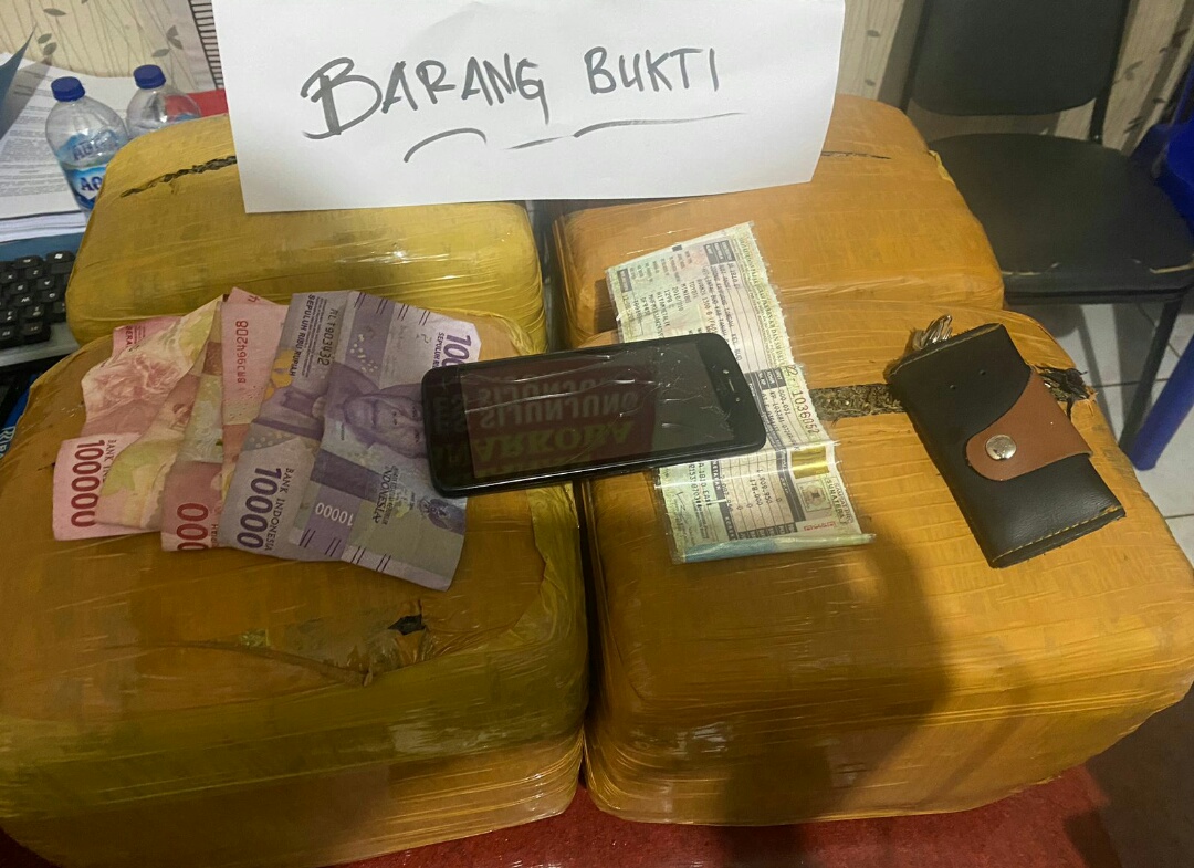 Dari pelaku, petugas menemukan barang bukti narkotika jenis ganja sebanyak 20 kg yang dipaketkan dalam empat buah bingkisan.