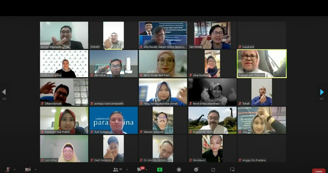 Diskusi diselenggarakan secara daring dan dimoderatori oleh Nurliya Apriyana, MM ini diikuti oleh peserta pengusaha, kalangan umum, mahasiswa dan dosen.