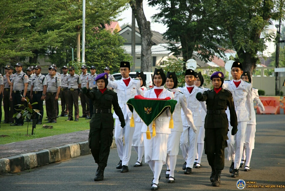 Upacara dipimpin oleh Wakil Rektor II UNP, Prof. Ir. Syahril, M.Sc., Ph.D, mewakili Rektor UNP, dan dihadiri oleh seluruh civitas akademik, termasuk dosen, tenaga kependidikan, mahasiswa, serta siswa-siswa dari sekolah Labor Pembangunan UNP.