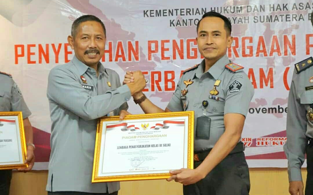 IWOSUMBAR.COM, PADANG – LEMBAGA Pemasyarakatan Kelas III Suliki menerima Piagam Penghargaan, Bertuliskan