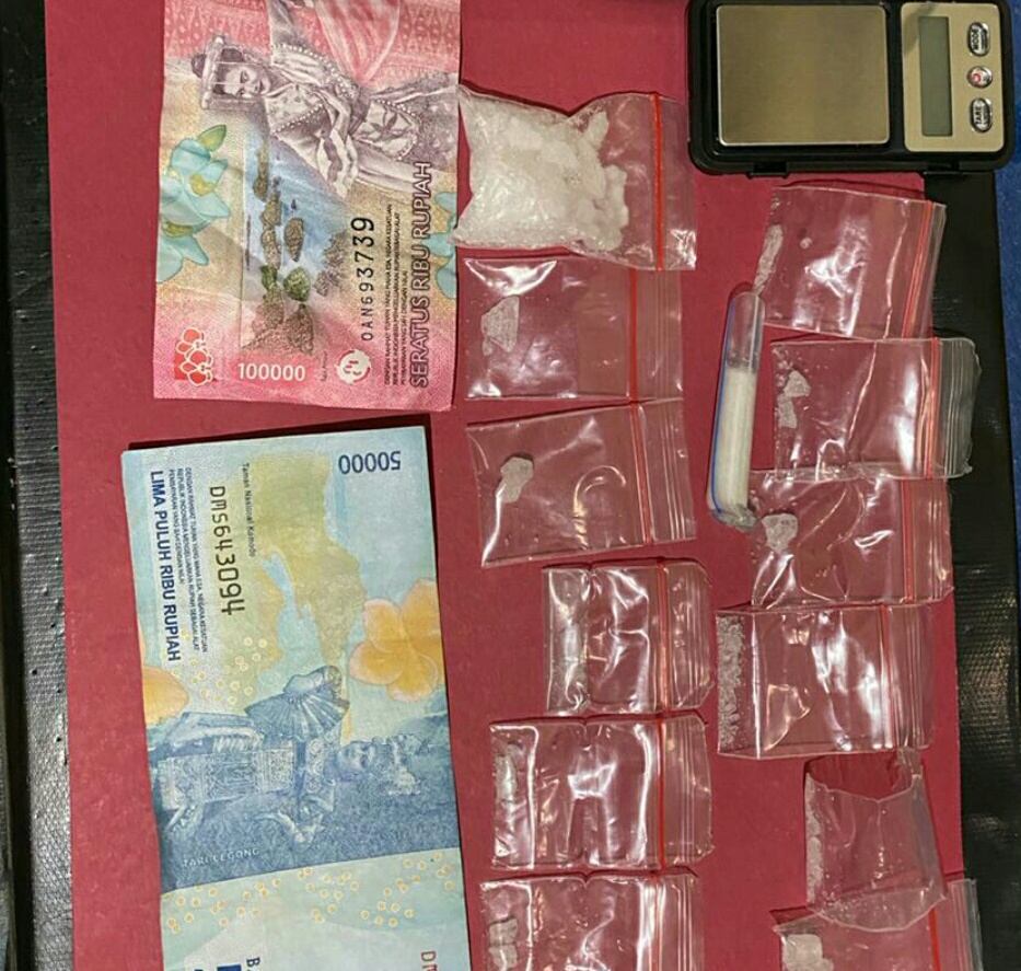 Dari pelaku RPS, petugas berhasil menyita sejumlah barang bukti, termasuk satu buah dompet warna pink, satu paket sedang terbungkus plastik bening berisi butiran kristal yang diduga narkotika jenis sabu, 12 paket yang terbungkus plastik klip bening berisi butiran kristal bening yang diduga narkotika jenis sabu, satu unit handphone merk VIVO warna hitam, satu unit timbangan warna hitam, satu buah sendok yang terbuat dari pipet, dan uang sejumlah Rp.150.000.