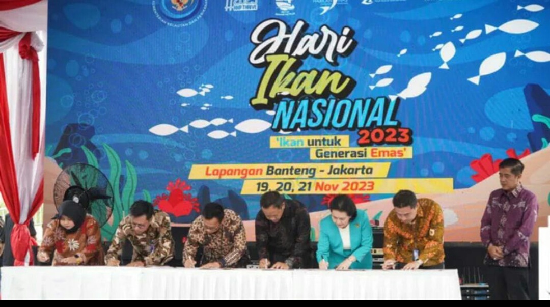 Iwosumbar.com, Jakarta – Direktur Utama PT Pindad, Abraham Mose bersama Direktur Utama PT Pindad International Logistic (PT PIL), Suresh Ferdian menandatangani MoU kerja sama logistik pengiriman ikan tuna ke sejumlah negara dengan Kementerian Kelautan dan Perikanan Republik Indonesia (KKP) di gelaran Hari Ikan Nasional (Harkannas) 2023 di Lapangan Banteng, Jakarta, Selasa (21/11).