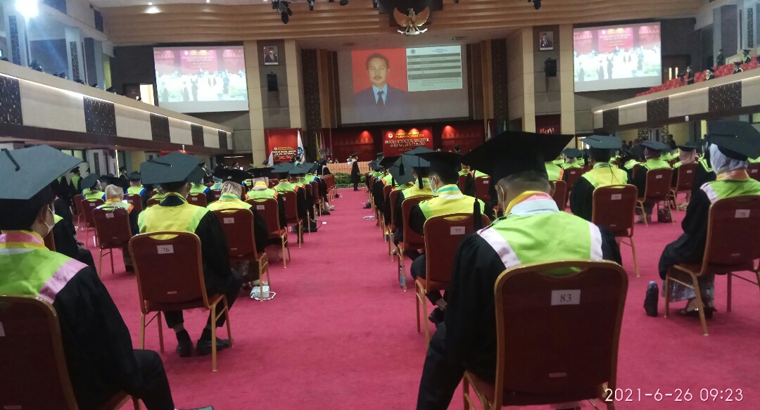Di hari pertama Sabtu (26/6) sebanyak 442 orang mengikuti diwisuda secara luring berlangsung khidmat dan lancar.