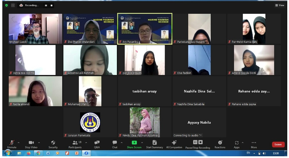 Melalui kolaborasi internasional dalam pembelajaran dengan Prof.Michel Lueck ini diharapkan wawasan mahasiswa S1 Pariwisata terkait wisata bahari tidak hanya berskala nasional namun juga berskala internasional dalam rangka mendukung UNP sebagai World Class University. (Hum)