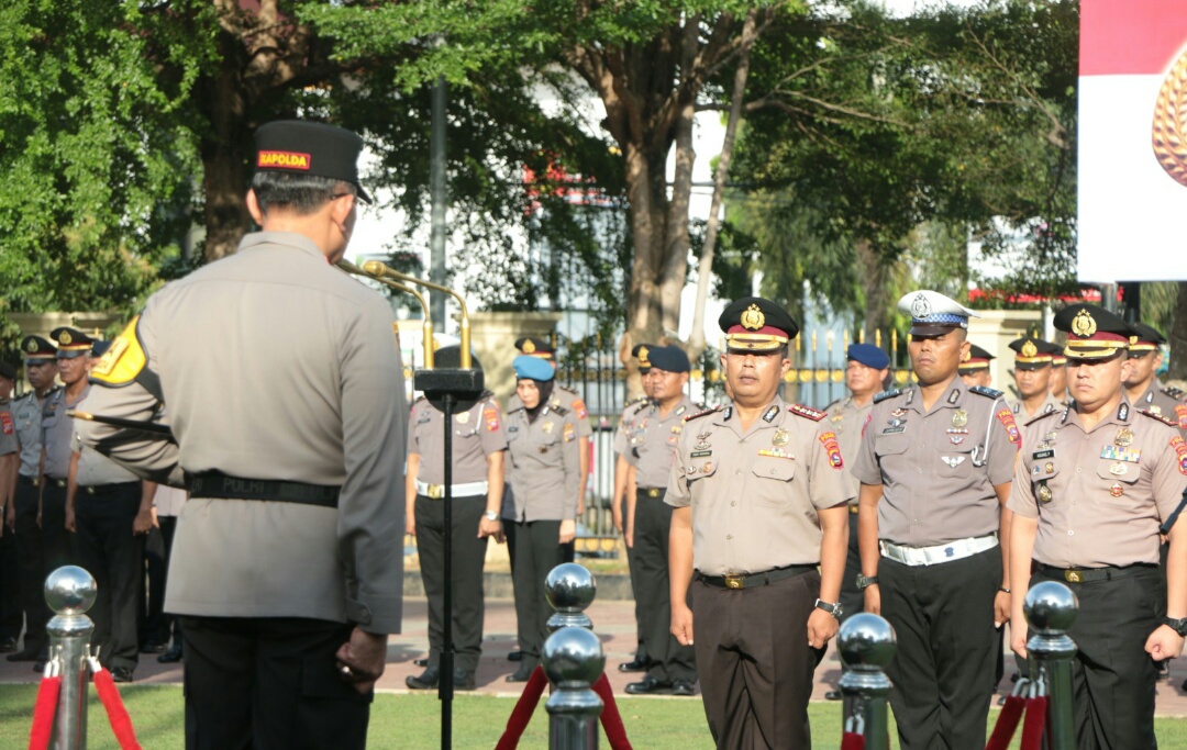 Upacara kenaikan pangkat di Polda Sumbar, disaksikan Wakapolda Brigjen Pol Gupuh Setiyono, Pejabat Utama Polda. Ketua Bhayangkari Daerah Sumbar ny. Iis Suharyono beserta pengurus Bhayangkari, dan keluarga personel yang naik pangkat. (*)