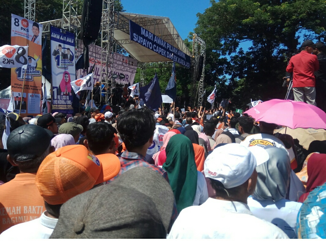 IWOSUMBAR.COM, PADANG- CALON Presiden No 1 Anies Baswedan menggelar kampanye akbar di GOR Haji Agussalim Padang, Sumatera Barat, pada Kamis, 25 Januari 2024. Masyarakat dari berbagai kabupaten/kota di Sumbar tampak memadati lokasi, yang tiba dengan kendaraan pribadi maupun bus yang disewa.