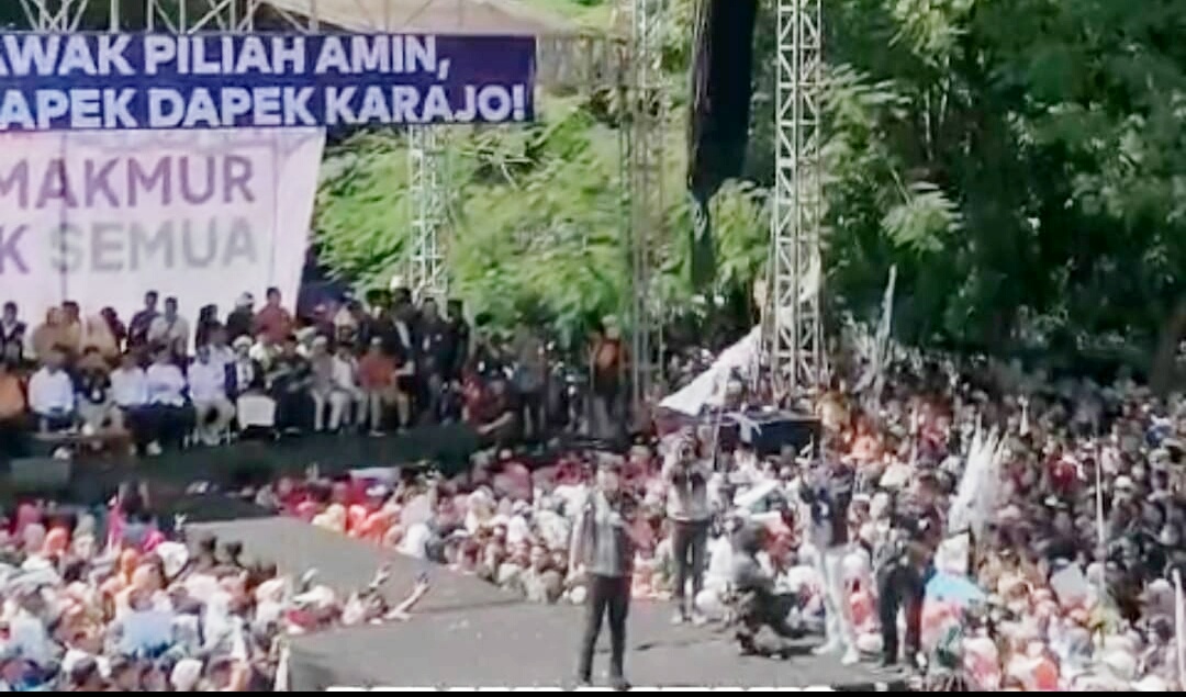 IWOSUMBAR.COM, PADANG- KETUA DPW NasDem Sumatera Barat (Sumbar), Fadly Amran, menjadi orator pada kampanye Akbar Anies Baswedan di Gor Haji Agussalim Padang, Kamis 25/1-2024 siang mengungkapkan apresiasi terhadap perhatian Anies Baswedan terhadap Sumatra Barat.