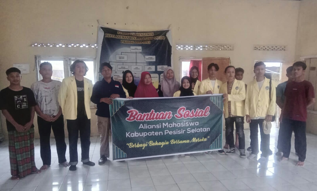 Pengurus panti asuhan dan beberapa anak panti asuhan menyambut kedatangan beberapa orang mahasiswa dari Badan Mahasiswa Eksekutif (BEM) Universitas Negeri Padang (UNP) Cabang Pesisir Selatan, bersama Sat Intelkam Polres Pesisir Selatan.