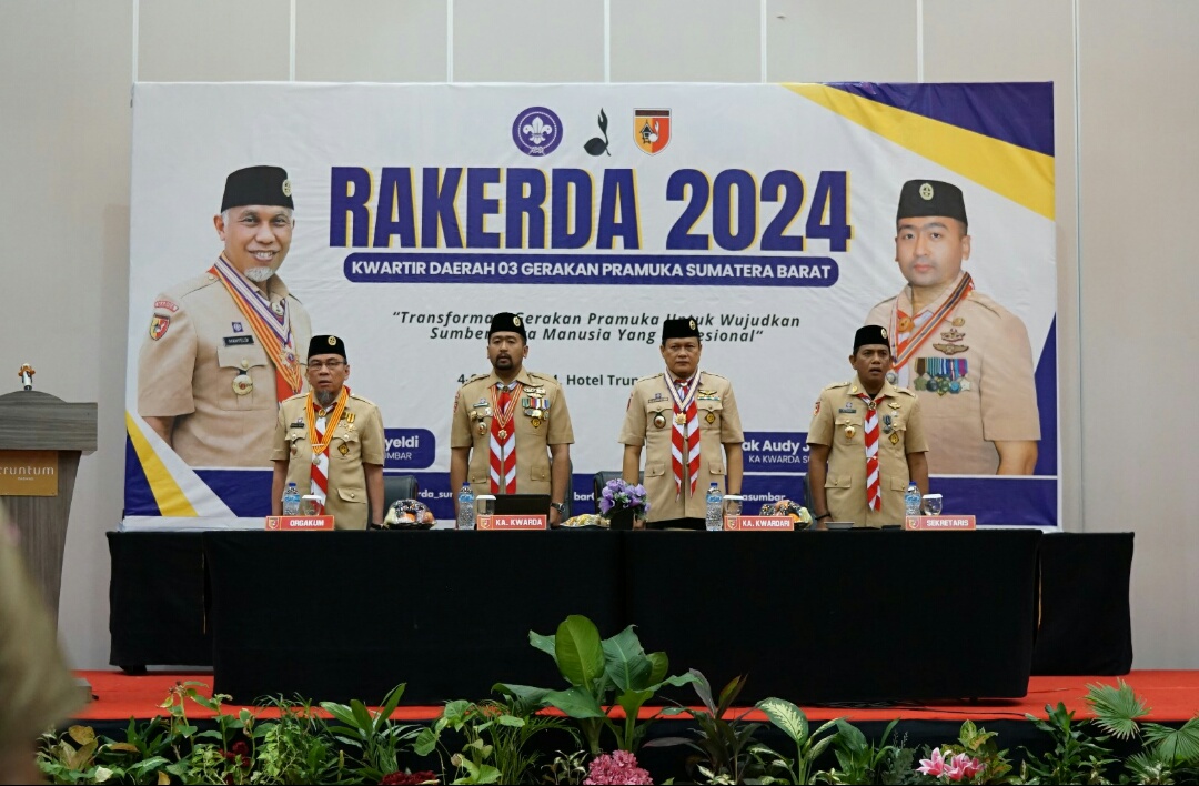 Wakil Gubernur Sumatera Barat, Audy Joinaldy yang juga Ketua Kwartir Daerah 03 Gerakan Pramuka secara resmi membuka kegiatan Rapat Kerja Daerah (Rakerda) Gerakan Pramuka Sumatera Barat Tahun 2024.