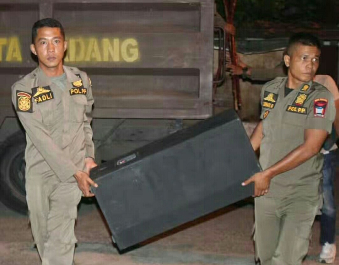 IWOSUMBAR.COM, PADANG- SEBUAH kafe yang menghidupkan live musik hingga larut malam di Kelurahan Air Pacah, Kecamatan Koto Tangah, Kota Padang di tertibkan oleh Satuan Polisi Pamong Praja (Satpol PP) Kota Padang, Kamis (14/3/2024).