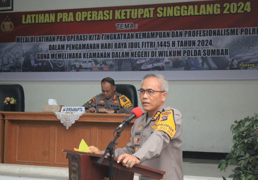 Hal itu diberitahukan pada kegiatan Latihan Pra Operasi Ketupat Singgalang 2024 di Mapolda Selasa (2/4/2024). Yang bertujuan untuk mempersiapkan pengamanan arus mudik dan balik.