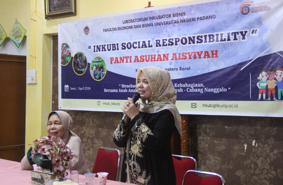 IWOSUMBAR.COM, PADANG – LABORATORIUM Inkubator Bisnis Fakultas Ekonomi dan Bisnis (FEB) Universitas Negeri Padang (UNP) menyelenggarakan kegiatan “Inkubi Social Responsibility (ISR)”, di Panti Asuhan Aisyiyah Putri. Senin (1/4) lalu