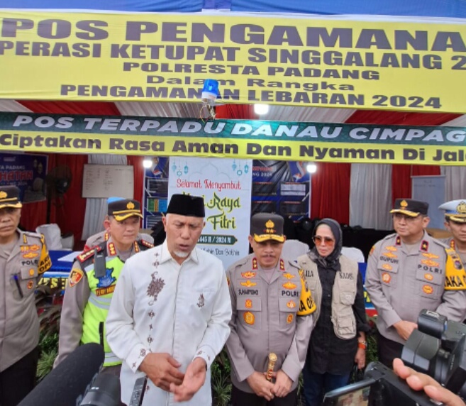 IWOSUMBAR.COM, PADANG – KAPOLDA dan Gubernur Mahyeldi beserta Forkompinda Sumatera Barat melakukan pengecekan kesiapan personil dalam pengamanan di pos Terpadu Idulfitri yang berada di danau Chimpago Padang Selada (9/4/2024).