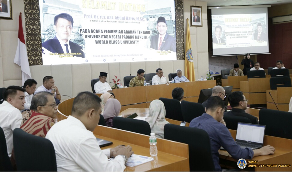 IWOSUMBAR.COM, PADANG – UNIVERSITAS Negeri Padang (UNP) mengundang Direktur Jenderal Pendidikan Tinggi, Riset, dan Teknologi (Dirjen Dikti Ristek) Kementerian Pendidikan, Kebudayaan, Riset, dan Teknologi (Kemdikbud Ristek), Prof. Dr. rer. nat. Abdul Haris, M.Sc guna memberikan pengarahan UNP menuju World Class University.