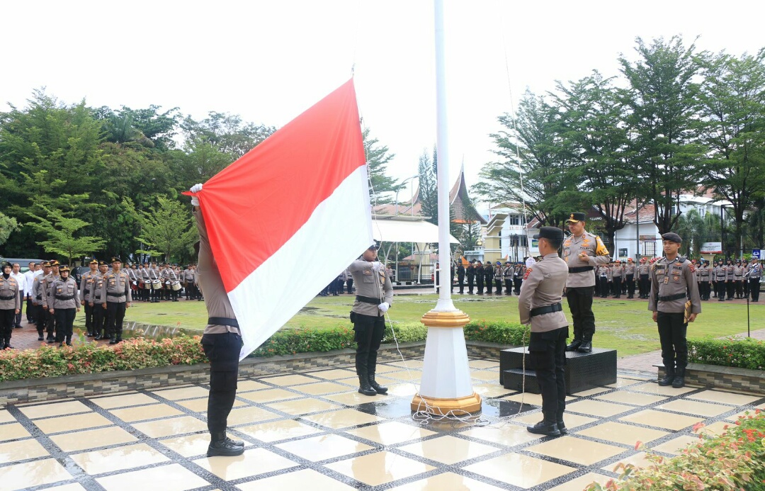 IWOSUMBAR.COM, PADANG- Upacara bulanan dipimpin Kapolda berlangsung di halaman Mapolda Sumbar, Rabu (17/4) diikuti Wakapolda Brigjen Pol Gupuh Setiyono, S.Ik. SH dan Pejabat Utama Polda.