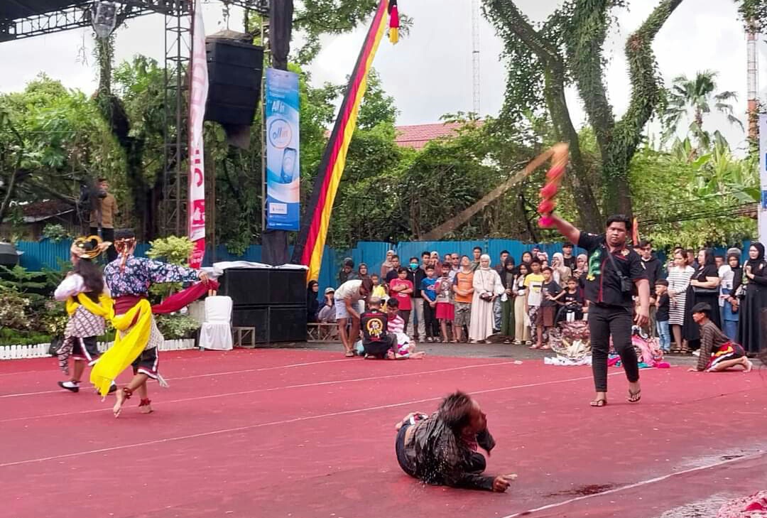 IWOSUMBAR.COM, PADANG – Festival Rakyat Muaro Padang Tempo Doeloe yang digelar pada Sabtu (20/4/2024) di kawasan Jembatan Siti Nurbaya, Kelompok Kuda Lumping dari Paguyuban Ares Cahyo Budoyo menampilkan penampilan yang memikat penonton.