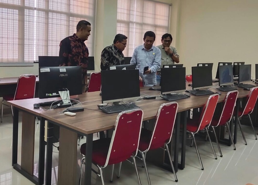 Panitia SNPMB (Seleksi Nasional Penerimaan Mahasiswa Baru) jalur Seleksi Nasional Berdasarkan Tes (SNBT) di Universitas Negeri Padang (UNP) melakukan cek lokasi, labor komputer, toilet dan ruang pengawas. Kamis (19/4/2024).