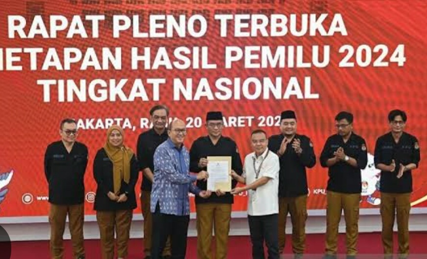 Komisi Pemilihan Umum (KPU) Republik Indonesia melaksanakan rapat pleno penetapan Presiden dan Wakil Presiden terpilih tahun 2024-2029. Yaitu pasangan Prabowo Subianto dan Gibran. Rabu (24/4/2024).