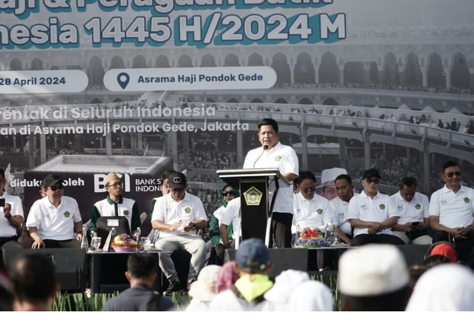 IWOSUMBAR.COM, JAKARTA -KEMENTERIAN Agama (Kemenag) menggelar Launching Senam Haji Indonesia di Asrama Haji Pondok Gede, Jakarta. Lebih dari 28 ribu jemaah haji Indonesia ikut serta dalam kegiatan ini, baik secara langsung maupun daring.