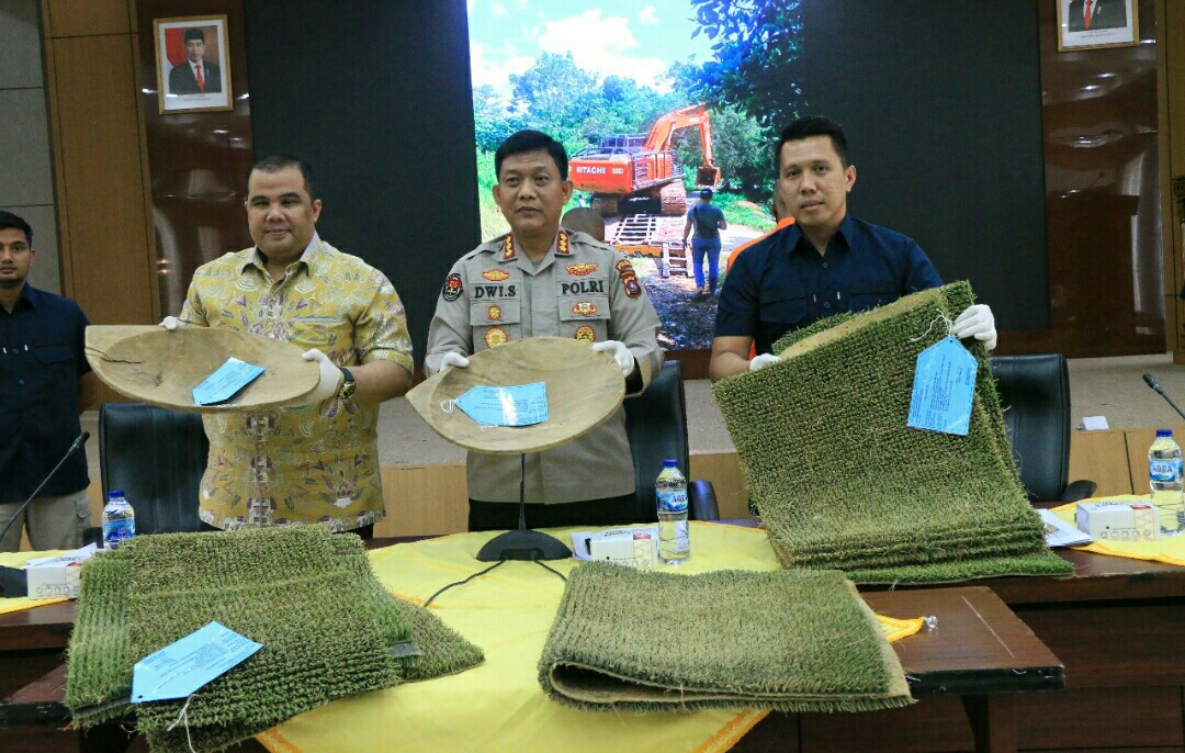 Dua ekskavator merek Hitachi warna orange, enam karpet sintetis dan dua alat dulang menjadi barang bukti dan telah diamankan.